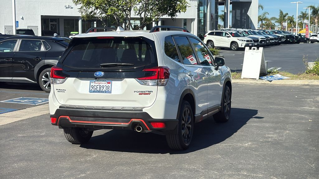 CERTIFIED PREOWNED PROGRAM. Recent Arrival! Certified. Clean CARFAX. One Owner!. Low Miles!. Non Smoker!. Passed Dealer Inspection. Just Detailed. Recent Oil Change. well equipped with Forester Sport. well equipped with 4D Sport Utility. well equipped with 2.5L 4-Cylinder DOHC 16V. well equipped with AWD. well equipped with 3.70 Axle Ratio. well equipped with 4-Wheel Disc Brakes. well equipped with 6 Speakers. well equipped with ABS brakes. well equipped with Air Conditioning. well equipped with Alloy wheels. well equipped with AM/FM radio: SiriusXM. well equipped with Anti-whiplash front head restraints. well equipped with Auto High-beam Headlights. well equipped with Automatic temperature control. well equipped with Brake assist. well equipped with Bumpers: body-color. well equipped with CD player. well equipped with Driver door bin. well equipped with Driver vanity mirror. well equipped with Dual front impact airbags. well equipped with Dual front side impact airbags. well equipped with Electronic Stability Control. well equipped with Emergency communication system: STARLINK Safety and Security (Subscription Required). well equipped with Exterior Parking Camera Rear. well equipped with Four wheel independent suspension. well equipped with Front anti-roll bar. well equipped with Front Bucket Seats. well equipped with Front Center Armrest. well equipped with Front fog lights. well equipped with Front reading lights. well equipped with Fully automatic headlights. well equipped with Heated door mirrors. well equipped with Heated Front Bucket Seats. well equipped with Heated front seats. well equipped with Illuminated entry. well equipped with Knee airbag. well equipped with Leather Shift Knob. well equipped with Low tire pressure warning. well equipped with Occupant sensing airbag. well equipped with Outside temperature display. well equipped with Overhead airbag. well equipped with Overhead console. well equipped with Panic alarm. well equipped with Passenger door bin. well equipped with Passenger vanity mirror. well equipped with Power door mirrors. well equipped with Power driver seat. well equipped with Power moonroof: Panoramic. well equipped with Power steering. well equipped with Power windows. well equipped with Radio data system. well equipped with Radio: Subaru Starlink 6.5' Multimedia Plus System. well equipped with Rear anti-roll bar. well equipped with Rear seat center armrest. well equipped with Rear window defroster. well equipped with Rear window wiper. well equipped with Remote keyless entry. well equipped with Roof rack: rails only. well equipped with Security system. well equipped with Speed control. well equipped with Speed-sensing steering. well equipped with Split folding rear seat. well equipped with Spoiler. well equipped with Sport Cloth Upholstery. well equipped with STARLINK/Apple CarPlay/Android Auto. well equipped with Steering wheel mounted audio controls. well equipped with Tachometer. well equipped with Telescoping steering wheel. well equipped with Tilt steering wheel. well equipped with Traction control. well equipped with Trip computer. well equipped with Turn signal indicator mirrors. well equipped with Variably intermittent wipers. well equipped with Wheels: 18' x 7.0 J Black Finish Aluminum-Alloy. Fresh Oil Change. Fresh Engine Air Filter. Detailed Interior/Exterior for Delivery. Multi Point Safety and Mechanical Inspection Performed by Certified Technician. Certified by Carfax - No Accidents. Certified by Carfax - One Owner. Certified by Carfax- No Accidents and One Owner. Non-Smoker Well Maintained & Cared For. Loaded. Non-Smoker. Plenty of Power and Fuel Efficient. Very Low Miles. Forester Sport. 4D Sport Utility. 2.5L 4-Cylinder DOHC 16V. AWD. Crystal White Pearl AWD 2.5L 4-Cylinder DOHC 16V 2023 Subaru Forester Sport Odometer is 4349 miles below market average! 26/33 City/Highway MPG