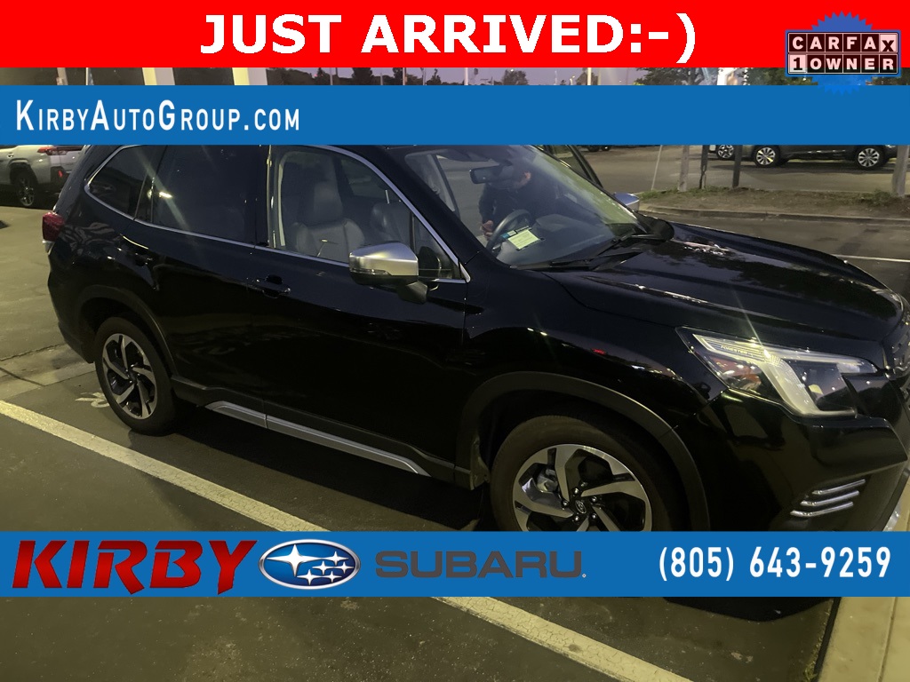 CERTIFIED PREOWNED PROGRAM. Certified. Low Miles!. Non Smoker!. Passed Dealer Inspection. Recent Oil Change. well equipped with Forester Touring. well equipped with 4D Sport Utility. well equipped with 2.5L 4-Cylinder DOHC 16V. well equipped with AWD. well equipped with Black Leather. well equipped with All-Weather Floor Liners. well equipped with Auto-Dimming Exterior Mirror w/Approach Lighting. well equipped with Auto-Dimming Mirror w/Compass & HomeLink. well equipped with Popular Package #3. well equipped with Rear Bumper Cover. well equipped with Rear Seatback Protector. well equipped with 3.70 Axle Ratio. well equipped with 4-Wheel Disc Brakes. well equipped with 9 Speakers. well equipped with ABS brakes. well equipped with Air Conditioning. well equipped with Alloy wheels. well equipped with AM/FM radio: SiriusXM. well equipped with Anti-whiplash front head restraints. well equipped with Auto High-beam Headlights. well equipped with Automatic temperature control. well equipped with Brake assist. well equipped with Bumpers: body-color. well equipped with CD player. well equipped with Driver door bin. well equipped with Driver vanity mirror. well equipped with Dual front impact airbags. well equipped with Dual front side impact airbags. well equipped with Electronic Stability Control. well equipped with Emergency communication system: STARLINK Safety and Security (Subscription Required). well equipped with Exterior Parking Camera Rear. well equipped with Four wheel independent suspension. well equipped with Front anti-roll bar. well equipped with Front Bucket Seats. well equipped with Front Center Armrest. well equipped with Front dual zone A/C. well equipped with Front fog lights. well equipped with Front reading lights. well equipped with Fully automatic headlights. well equipped with harman/kardon 576W Amp & Speaker System. well equipped with harman/kardon® Speakers. well equipped with Heated door mirrors. well equipped with Heated Front Bucket Seats. well equipped with Heated front seats. well equipped with Heated rear seats. well equipped with Heated steering wheel. well equipped with HVAC memory. well equipped with Illuminated entry. well equipped with Knee airbag. well equipped with Leather Shift Knob. well equipped with Low tire pressure warning. well equipped with Memory seat. well equipped with Navigation System. well equipped with Occupant sensing airbag. well equipped with Outside temperature display. well equipped with Overhead airbag. well equipped with Overhead console. well equipped with Panic alarm. well equipped with Passenger door bin. well equipped with Passenger vanity mirror. well equipped with Perforated Leather-Trimmed Upholstery. well equipped with Power door mirrors. well equipped with Power driver seat. well equipped with Power Liftgate. well equipped with Power moonroof: Panoramic. well equipped with Power passenger seat. well equipped with Power steering. well equipped with Power windows. well equipped with Premium audio system: harman/kardon. well equipped with Radio data system. well equipped with Radio: Subaru Starlink 8.0' Multimedia Nav System. well equipped with Rear anti-roll bar. well equipped with Rear seat center armrest. well equipped with Rear window defroster. well equipped with Rear window wiper. well equipped with Remote keyless entry. well equipped with Roof rack: rails only. well equipped with Security system. well equipped with Speed control. well equipped with Speed-sensing steering. well equipped with Split folding rear seat. well equipped with Spoiler. well equipped with Standard Model. well equipped with STARLINK/Apple CarPlay/Android Auto. well equipped with Steering wheel mounted audio controls. well equipped with Tachometer. well equipped with Telescoping steering wheel. well equipped with Tilt steering wheel. well equipped with Traction control. well equipped with Trip computer. well equipped with Turn signal indicator mirrors. well equipped with Variably intermitten