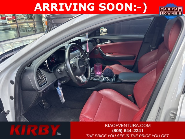 Kirby Kia is proud to offer this Kia Certified Pre-Owned 2022 Kia Stinger GT-Line. Certified. CARFAX One-Owner. KIA CERTIFIED!!!. Certified by Carfax - One Owner. Detailed Interior/Exterior for Delivery. Fresh Engine Air Filter. Fresh Oil Change. Multi Point Safety and Mechanical Inspection Performed by Certified Technician. Red Interior Color Package. Red Leather Seat Trim. 22/32 City/Highway MPG